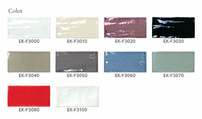 サブウェイタイル「マシア」。ハンドメイドの味わいがある古典的な壁タイルです。わずかな凸凹と釉薬が、色に深みを添えています。