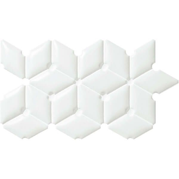 テキスタイルのような柔らかな丸みを帯びたフォルムを、艶やかなブライト釉で包みこみました。 上品なダイヤ模様を編み出す貼りパターンが、オーセンティックな空間を創造します。