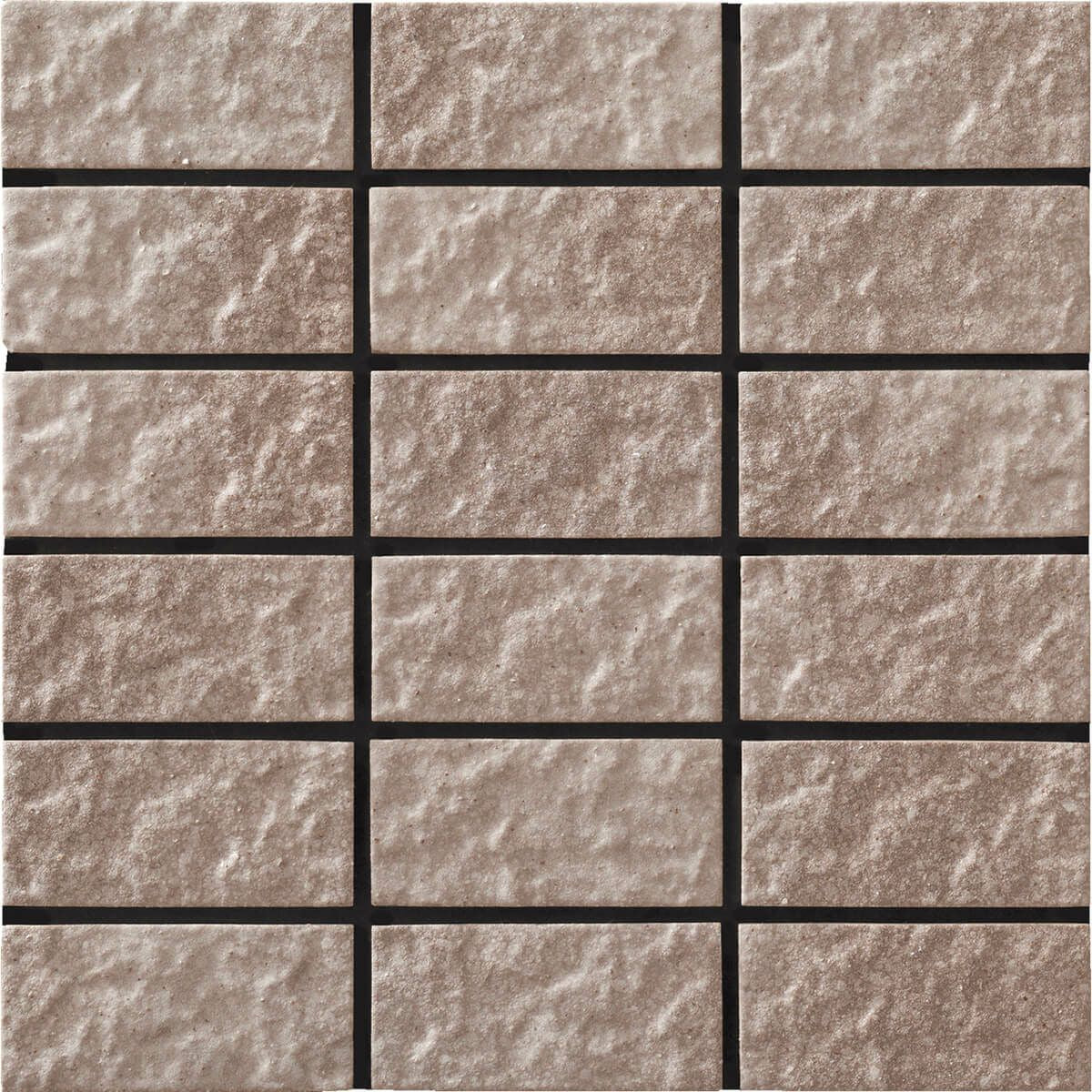 ダイナミックな凹凸のある面状が特徴的なモザイクタイル。他面状との組み合わせでデザイン性が広がります。