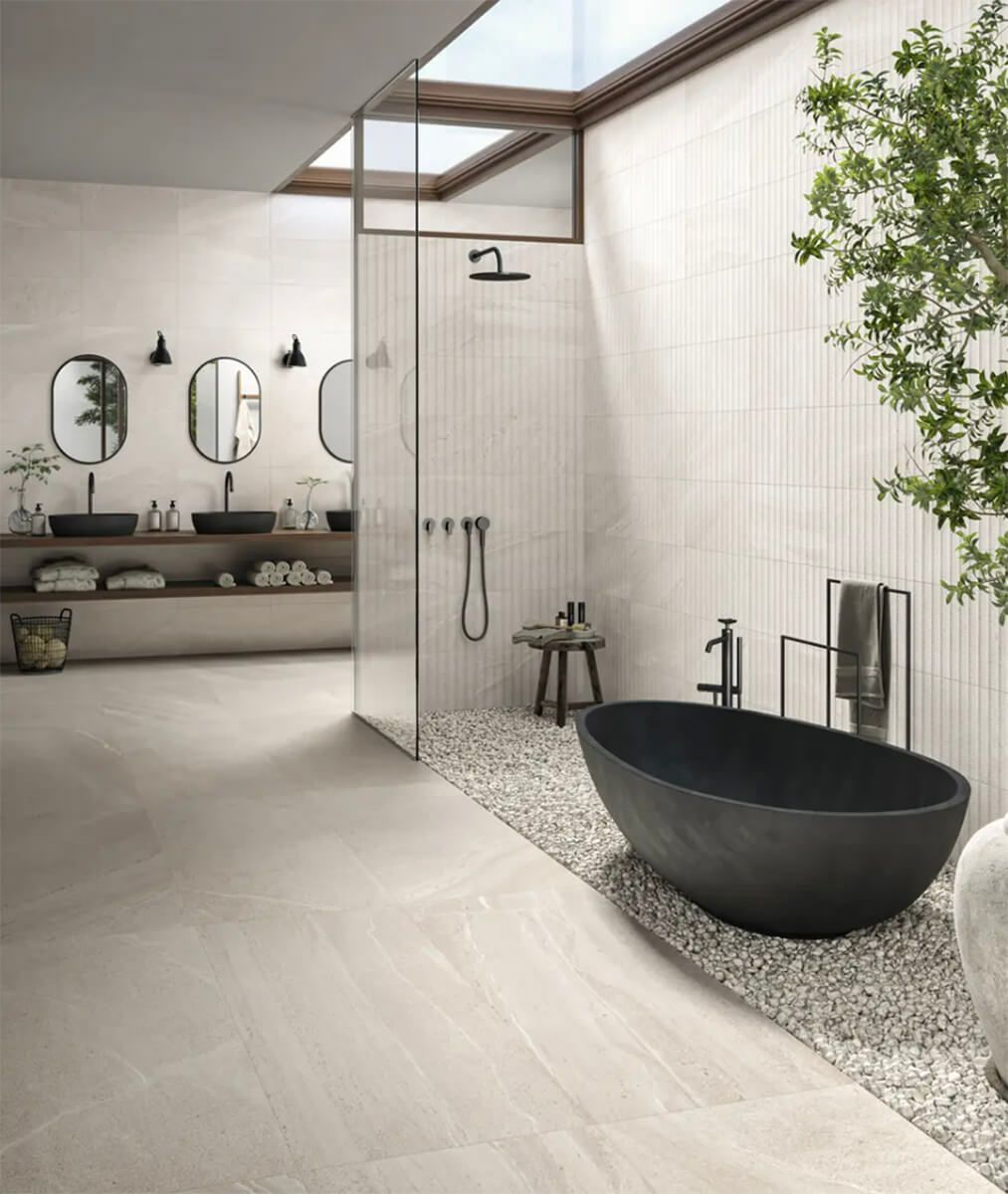 古くから世界的に愛用される歴史的な石種として有名な、バリントンストーンの風格と贅沢さを再現したシリーズです。シルクのような手触りの水磨きと、平面の質感におおらかなウェーブ状の凹凸を施した特殊面状をご用意しました。