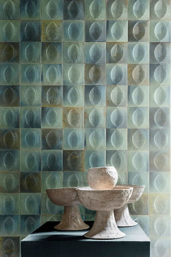 手作りならではの素材感と豊かな色むらを繊細に表現しました。ターコイズ色をはじめとしたニュアンスのある5色のカラーバリエーションと、どこか懐かしさを感じさせるやわらかな造形のレリーフタイルが特徴的なシリーズです。