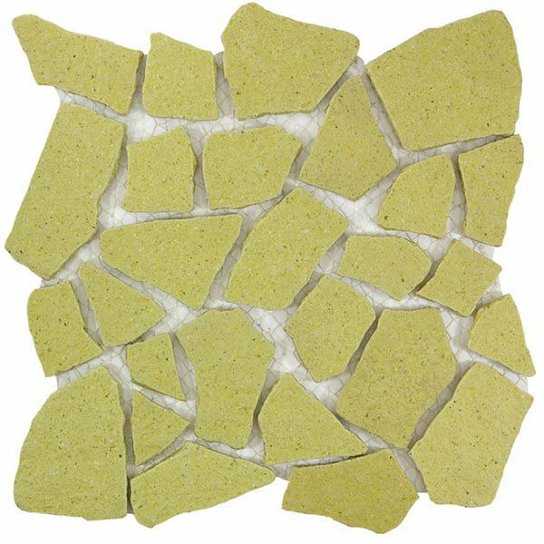 製造工程で割った特殊形状のタイルです。ふたつとして同じ形のないクラッシュタイルは曲面表現・オブジェ創作など造形感覚を刺激する「タイルアート素材」。鋭角部分の縁も丸く施工しているので安全です。DIYや工作などに!