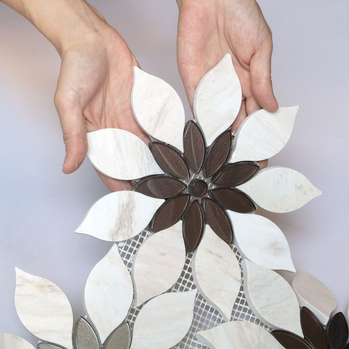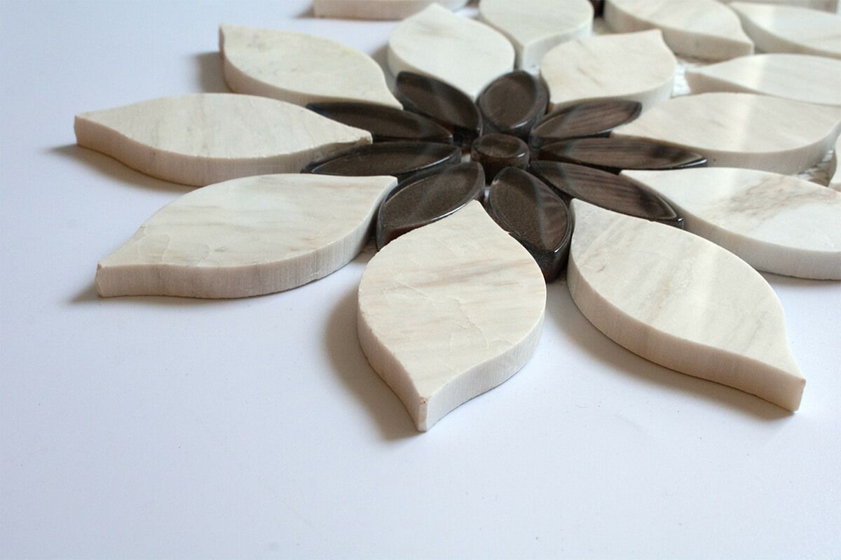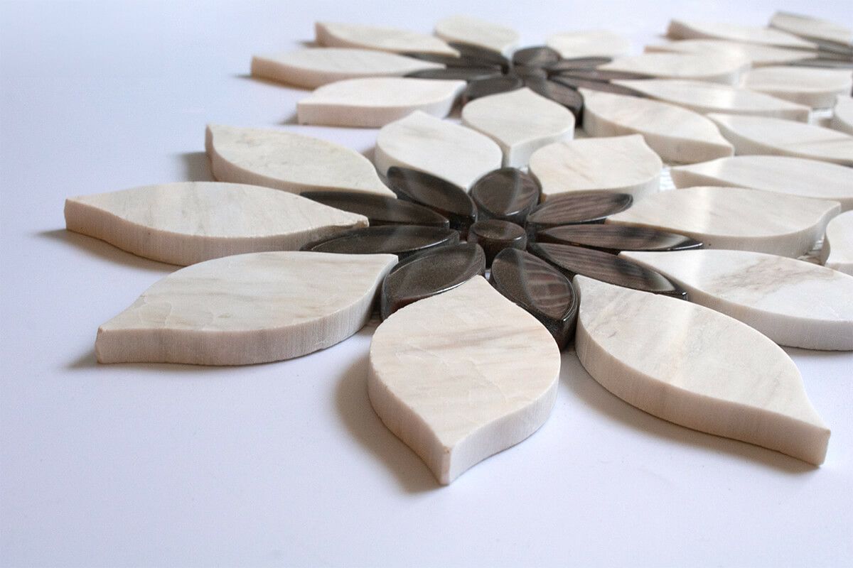 デザイン豊かな大理石モザイクを集めた特別なコレクション。三角形のモザイクタイルでキッチンやバスルーム、洗面・トイレをラグジュアリーな空間に。