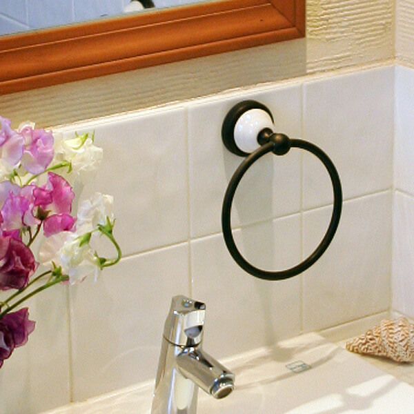 無垢材の真鍮を黒色に着色したリング型のタオル掛けです。