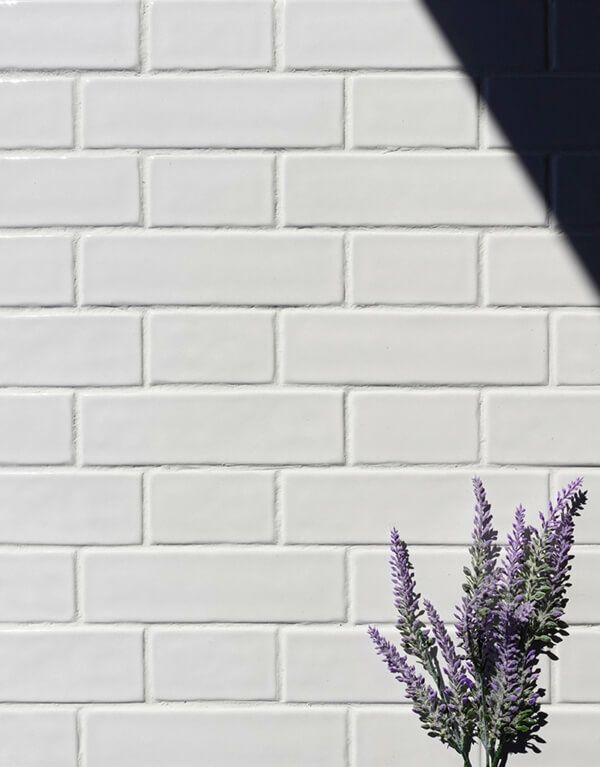 フランス貼りでシート加工した壁タイル。ソフトなカラーと釉薬のむら感がナチュラルなインテリアによく合います。