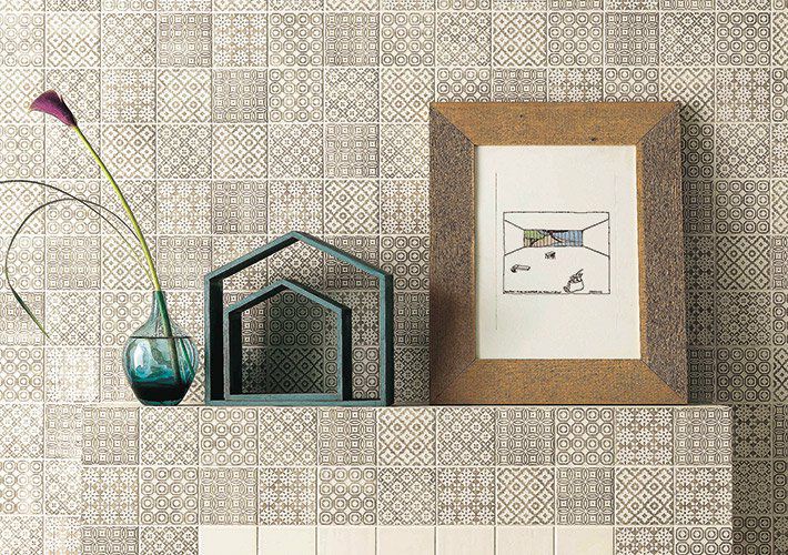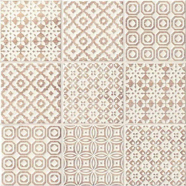 インドネシアやマレーシアで伝統的なろうけつ染めの布“バティック”の文様をモチーフにした繊細なデザインの100角・インテリア壁タイルです。浅く彫刻された面状と手染め風の着色です。