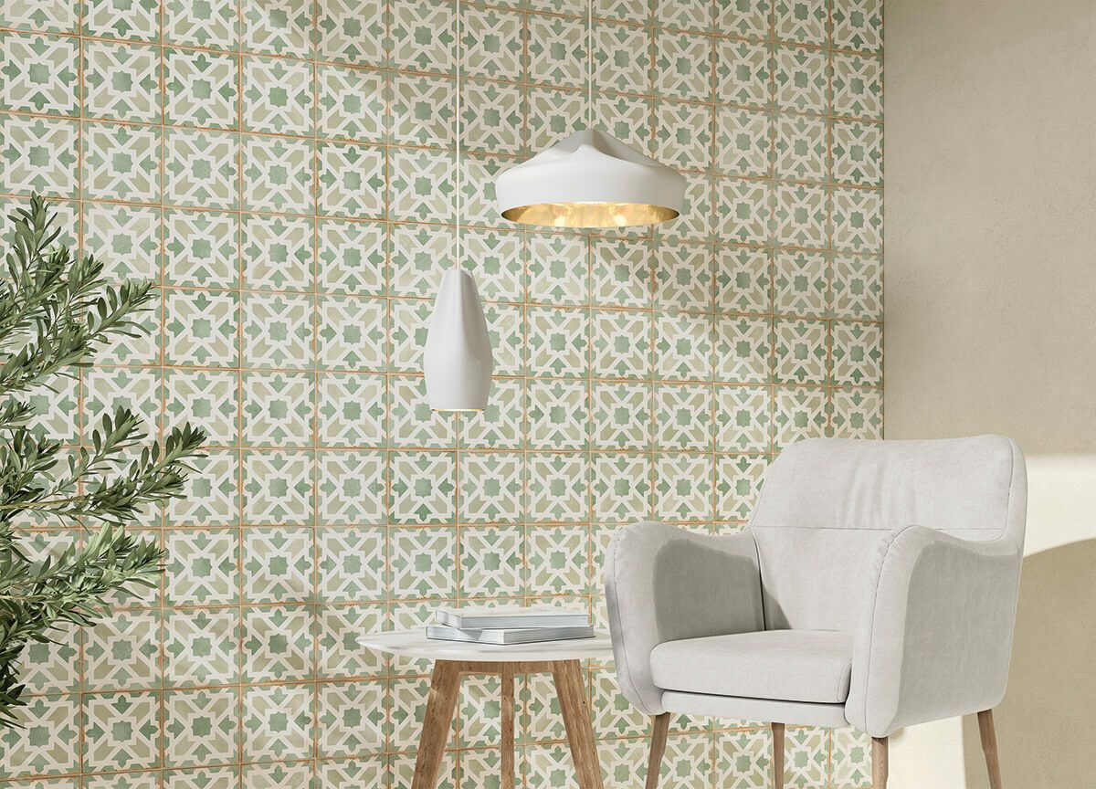 北アフリカの伝統的な陶磁器にインスパイアされたCASABLANCA。ハンドメイドな風合いと不均等なエッジ、そして地中海風のデコレーションが特徴的で、経年変化を”敢えて”デザインとして取り入れています。ホワイト× 10種類のデコレーションは、様々な方法で組み合わせが可能。壁と床の両方に使用できます。