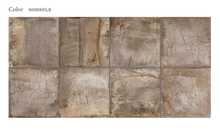 自然の浸食によって生まれる独特の色の変化と質感を、磁器質のタイルとして精巧に再現しています。