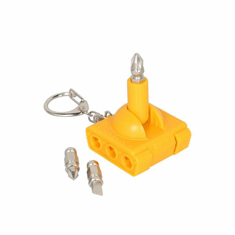 ドライバーセットを常時携帯するのは大変ですが、このミニドライバーなら手軽に実現出来ます。戦車のキャタピラに収納された3種類の先端パーツを取り出し、主砲部分に設置して使用。咄嗟の時の使いやすさを考えたデザインは、可愛さ余って便利さ100倍です。角度の変わる主砲も◎。