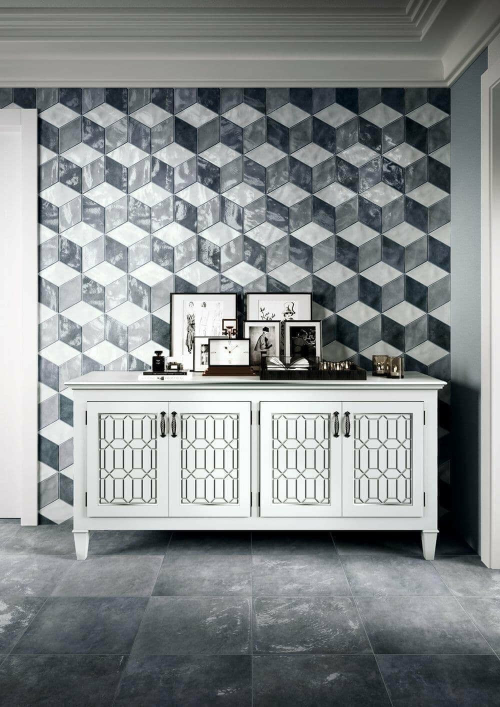 カタチとしての美しさが際立つダイヤ形状は、色とパターンの組み合わせでさまざまな幾何学模様に展開が可能。優しい光沢をもつ釉薬の表情とトーンを抑えたパステルカラーで、柔らかく包み込むような印象を創り出します。