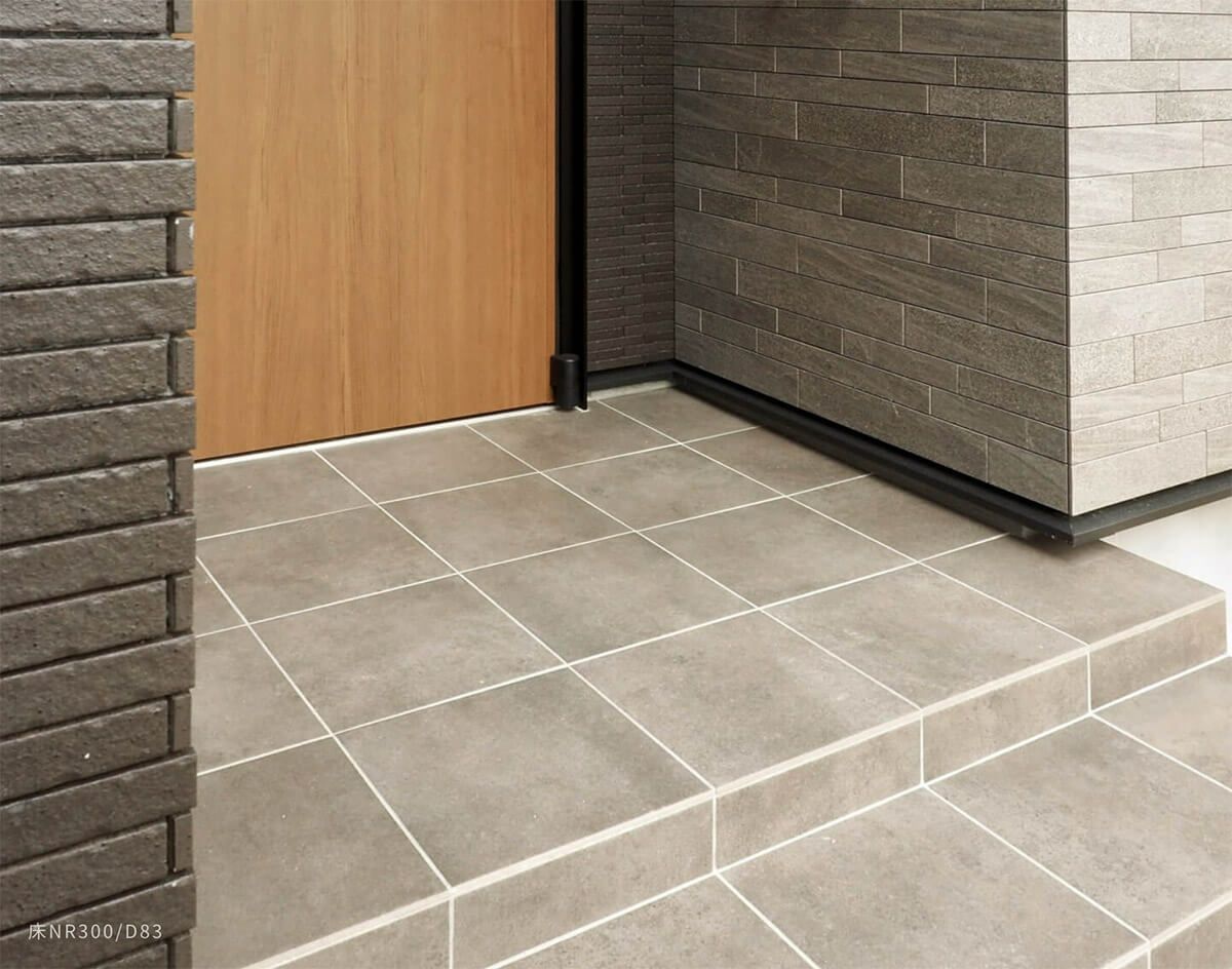 ● (グリップ)は外床用のノンスリップ加工をしたもの、(マット)は壁・内床用の製品です。● 水濡れする部分、玄関ポーチ・土間にはグリップタイプを使用してください。● 推奨工法(外床:改良圧着張り工法/圧着張り工法、内床:接着剤張り工法、外壁:スタップ工法(弾性接着剤張り工法)|5mmクシ目ビブラート、ビードL工法、ビードピン工法)