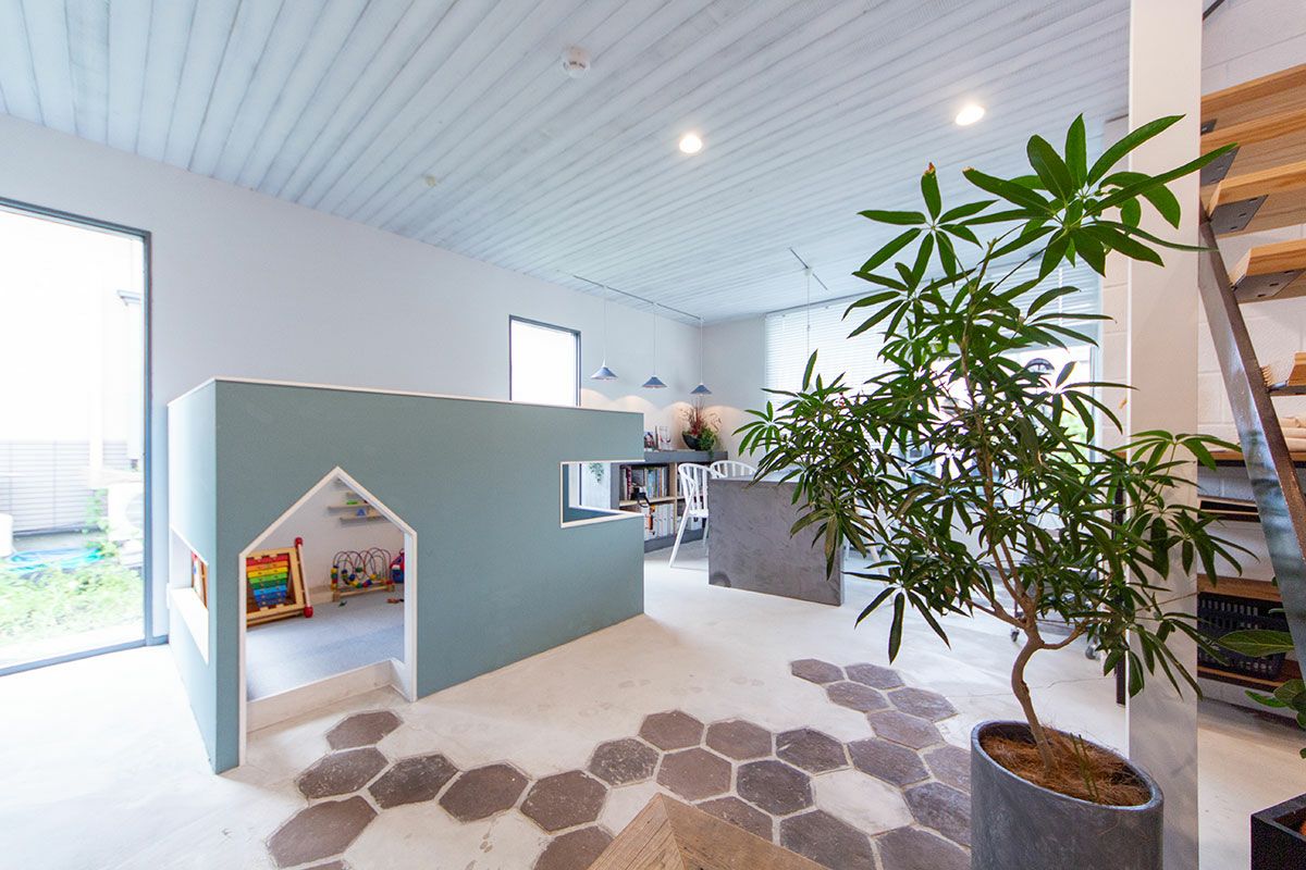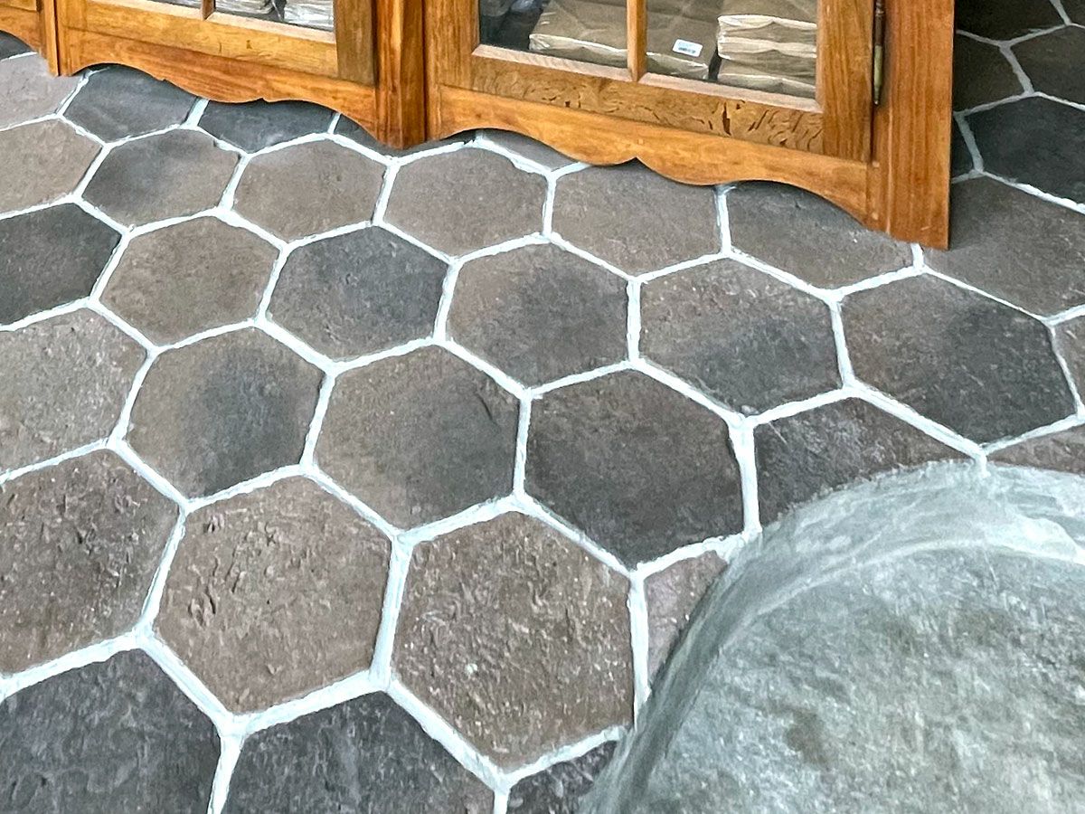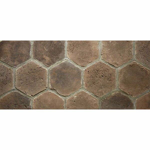 六角形タイル「Hexagon:ヘキサゴン(HEX)」。手作りの雰囲気を残し、イタリアの伝統的なテラコッタにも通じる、素朴な味わいのある床材です。形状で個性を発揮しながらも、テラコッタ調の風合いが空間によく馴染む、店舗から住宅まで幅広くご利用いただけるます。