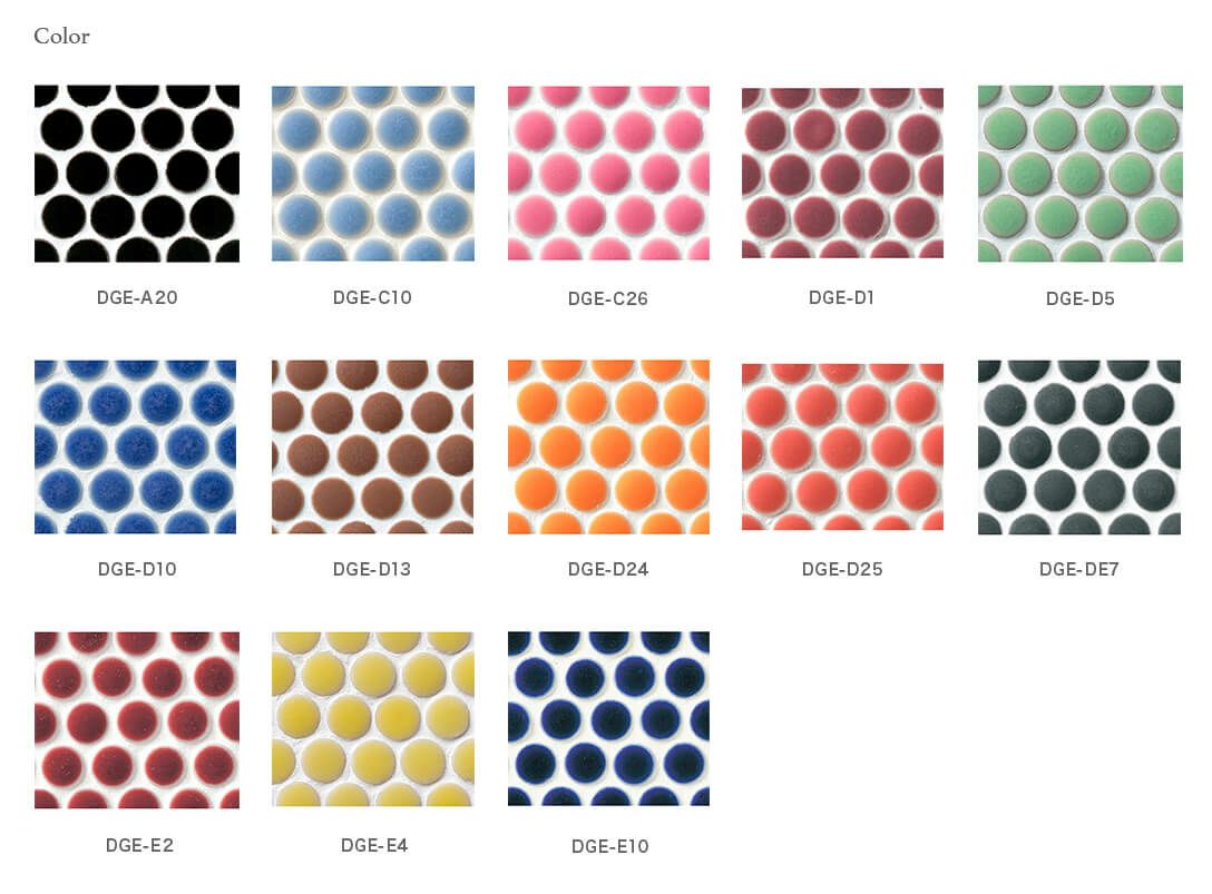 曲面にも馴染む直径10mmの丸モザイクが作るドット柄。カラーミックスや目地色との組み合わせで独創的なアレンジが可能です。