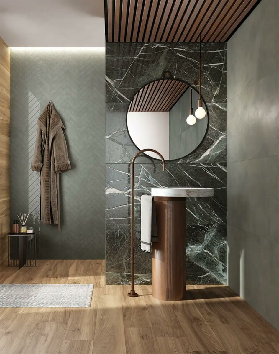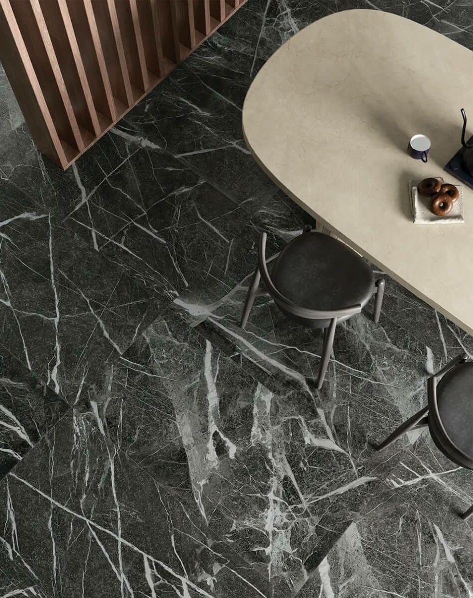 エレガントで装飾性の高い大理石調のタイルです。 イタリアの歴史的建造物や邸宅に見られるような、趣のある古びた凹凸の床を革新的な3Dプリント技術でリアルに表現しています。 それぞれに異なる模様が特徴の、3種類のホワイトマーブルが揃います。