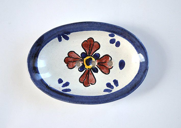 タイルの名産地でもあるスペインの都市、Seville(セビリア)の名がついた柄が描かれたメキシコ特産タラベラ焼のソープディッシュ。ラテンのエネルギーと素朴な可愛らしさはインテリアのアクセントに♪