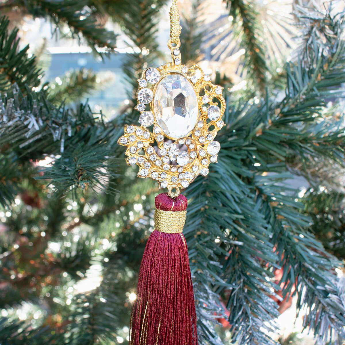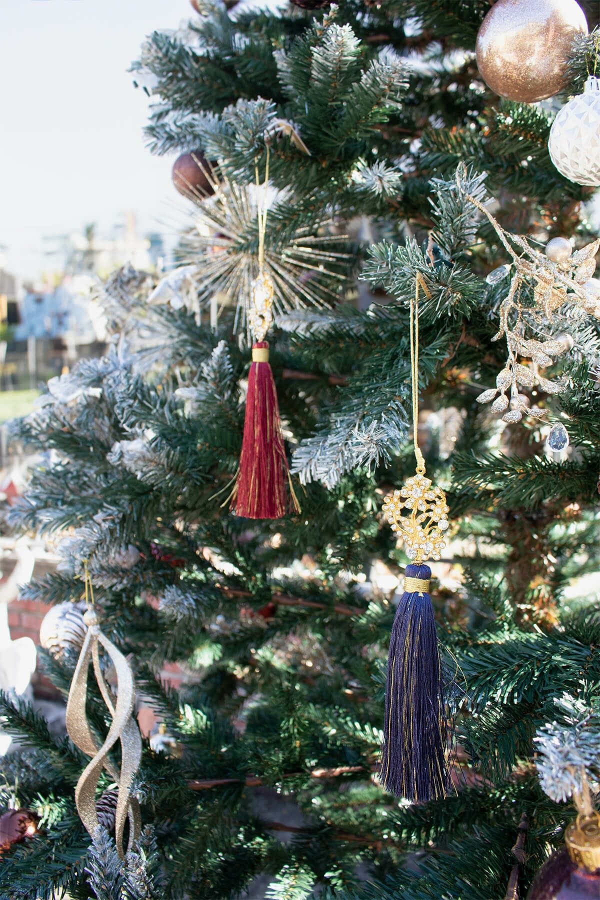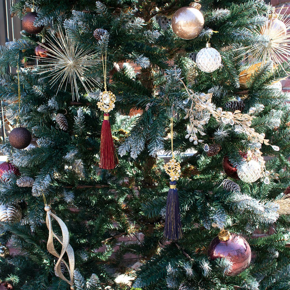 大きなビジューと細かい装飾が光を乱反射して、クリスマスインテリアをランクアップしてくれます。
