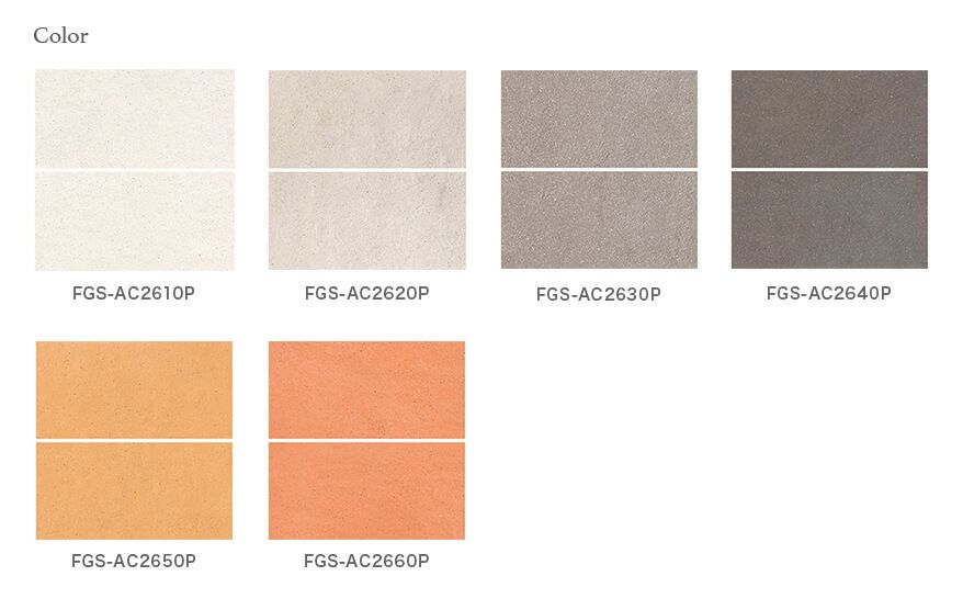 - 磨きタイルは面状特性により、施工方法・メンテナンス方法について注意事項があります。詳細は総合カタログに記載しています「磨きタイルについて」をご確認ください。