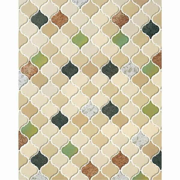 エスニックなイメージのランタン形のモザイクタイル「コラベル」。トラディショナルな釉薬づかいが、レトロなイメージを創ります。