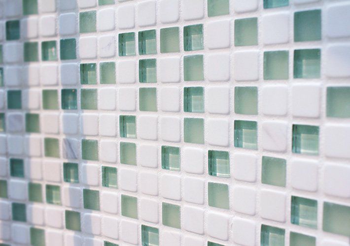 15mm角の小粒なガラスと大理石をミックスしたモザイクタイルです。