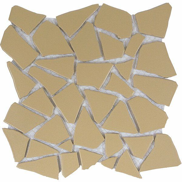 製造工程で割った特殊形状のタイルです。ふたつとして同じ形のないクラッシュタイルは曲面表現・オブジェ創作など造形感覚を刺激する「タイルアート素材」。鋭角部分の縁も丸く施工しているので安全です。DIYや工作などに!
