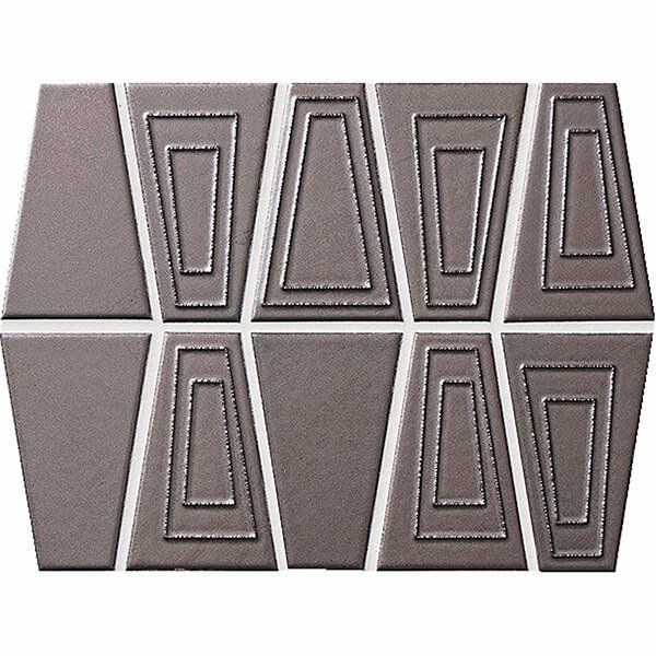 「リトム」。アールデコの幾何学デザインに触発された台形のモザイクタイル。淡く浮き出るラインの意匠が特徴的です。