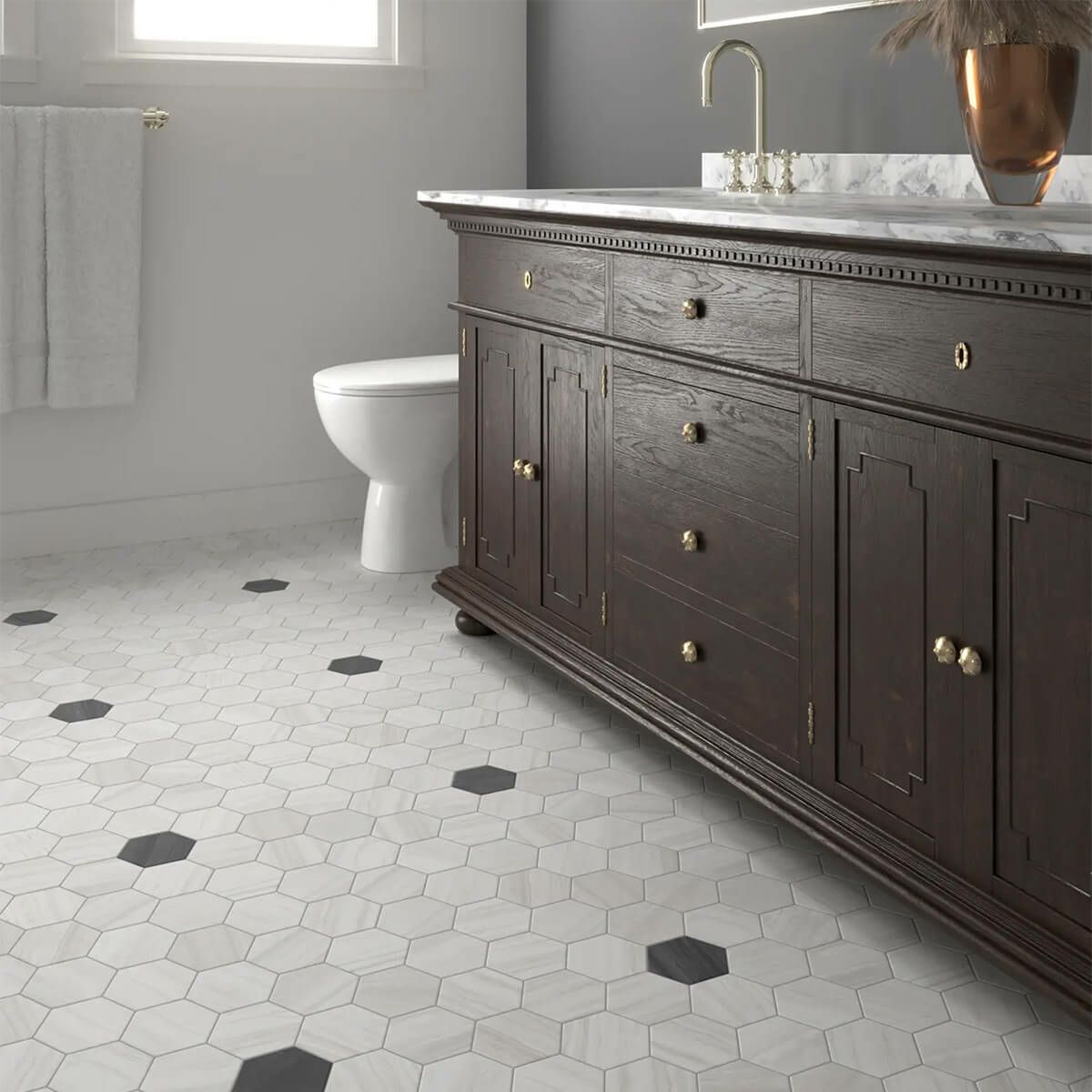 古代ギリシャ語で “石” を意味する「リトス」。 美しい大理石模様を、いまだ人気が衰えない六角形の形状で表現しています。 古典的な彫刻美術の世界を彷彿とさせる柔らかなマット仕上げの風合いは、床・壁どちらにも映える、時代を超越したエレガントなコレクションです。