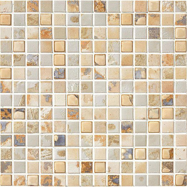 釉薬づかいが絶妙な個性を醸すモザイクタイル。侘びのイメージを演出する一品です。