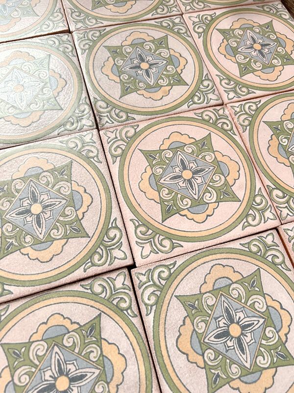 メキシコタイル同様に、メキシコの職人によってハンドメイドされているシエナコレクション。ビビットな色調が特徴のメキシコタイルに対して、なんとも絶妙な優しさ溢れる色合いは、トスカーナ地方の古都シエナで見られる色にインスパイアされているという。 壁への張付けはもちろん、家具の一部に使われることもあり、使用用途の幅が広い人気の高いアイテムです。