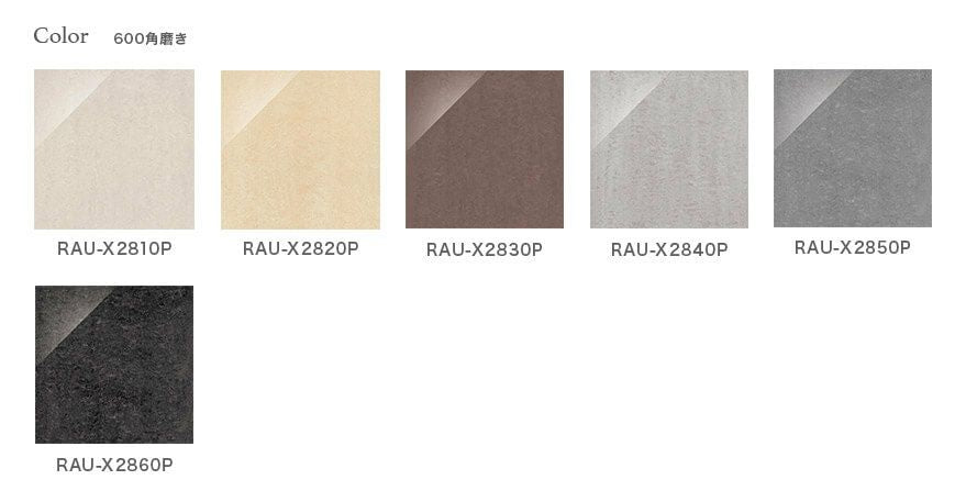 シンプルな600角で、使いやすい6種の基本色と3面状を揃えています。框用として、1200×300角20mm厚(受注輸入品)もラインナップ。