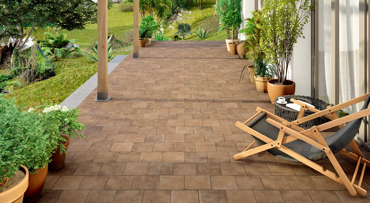 アウトドアシーンにも、もっと自由なタイルデザインを!自然調和を重視してデザインされたこのタイルは、いつの時代にもフィットするロングセラーアイテムです。遊び心のあるデコレーションタイルで、個性を演出しましょう。抵抗評価(DIN51130)R11のアンチスリップ性能で、フロア使用も安心です。