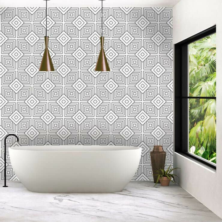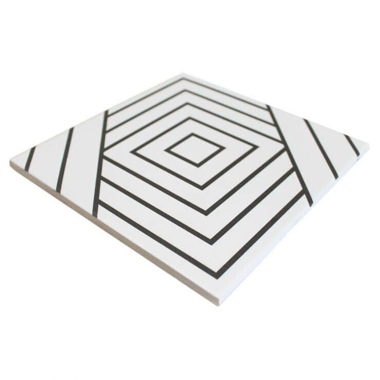 大胆な白黒のジオメトリック柄が特徴の200角タイル「B2W(ビートゥーダブリュー)」。