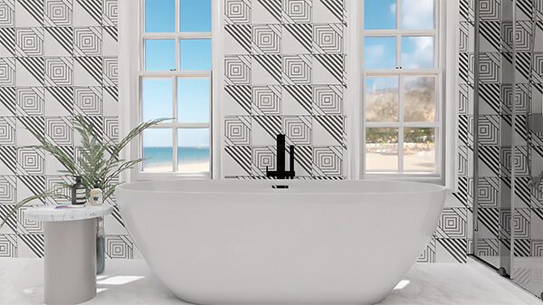 マットな仕上げはクラシックな、力強いパターンとコントラストはモダンな、二つの相反する要素を併せ持つこのタイルは、まさに “時代を超える” 空間づくりを実現します。