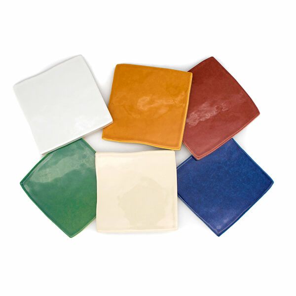 メキシコタイルのイメージを再現した、浴室壁や屋内床にも施工可能な100角タイル。鮮やかな色彩と手作り風の形状が特徴です。