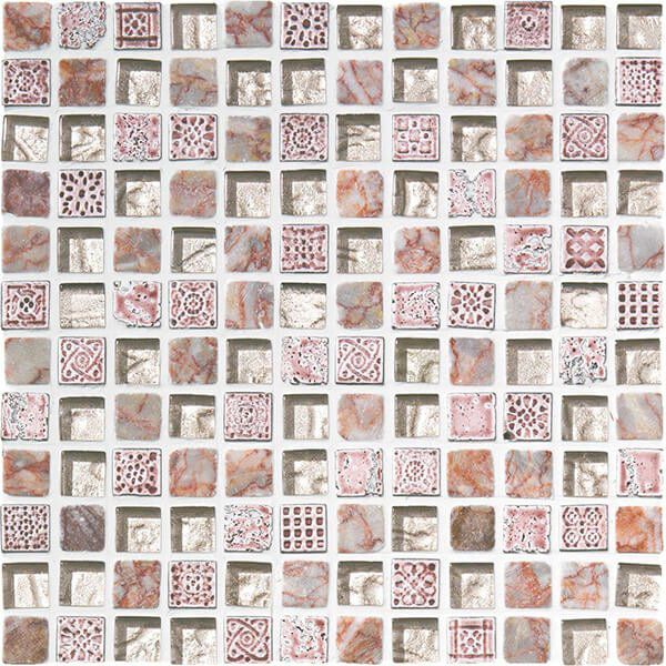 大理石やガラス、磁器などの多素材が混ざり合った美しいタイルです。