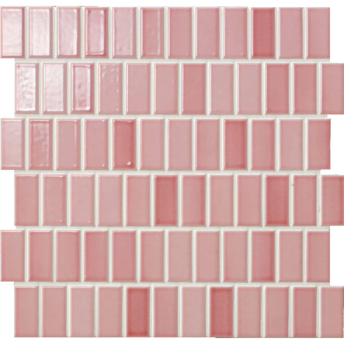 厳選された原料を使用した純白の生地に透明感のある釉薬を施し、躍動的で鮮やかな色調に仕上げました。甘いお菓子をイメージさせるようなキュートなモザイクタイルです。