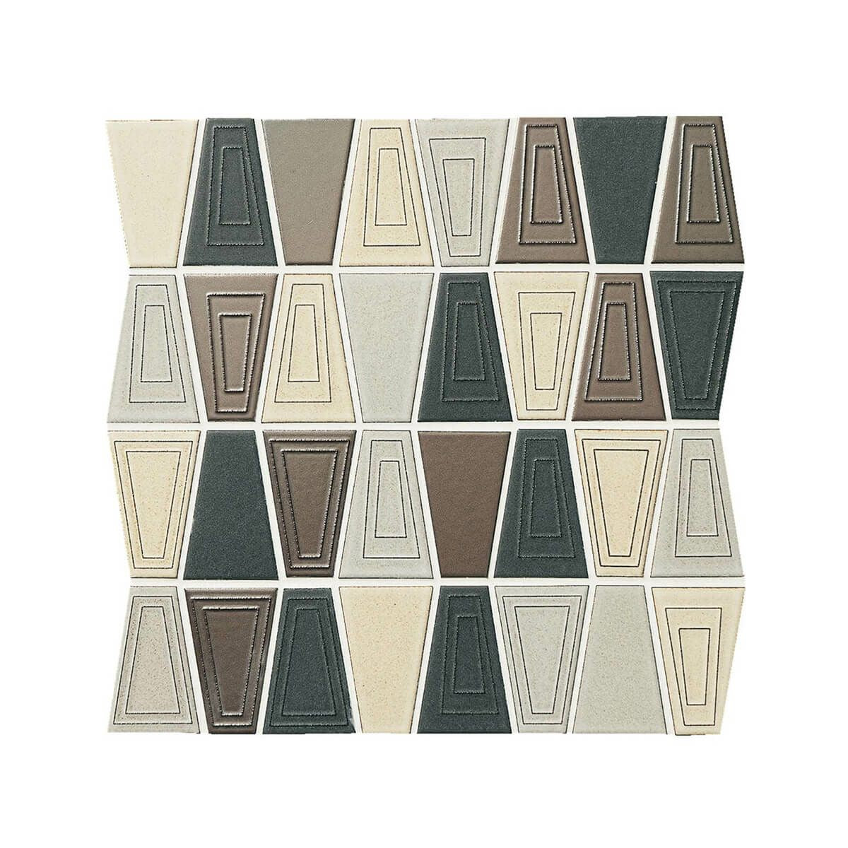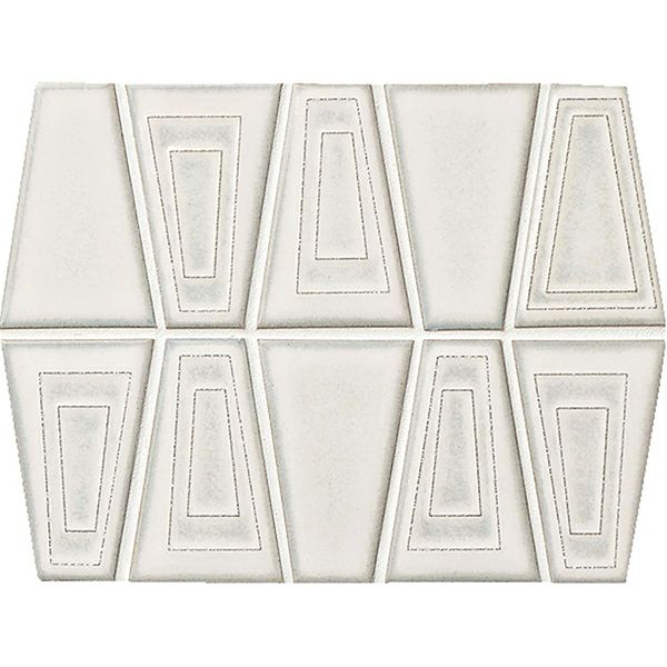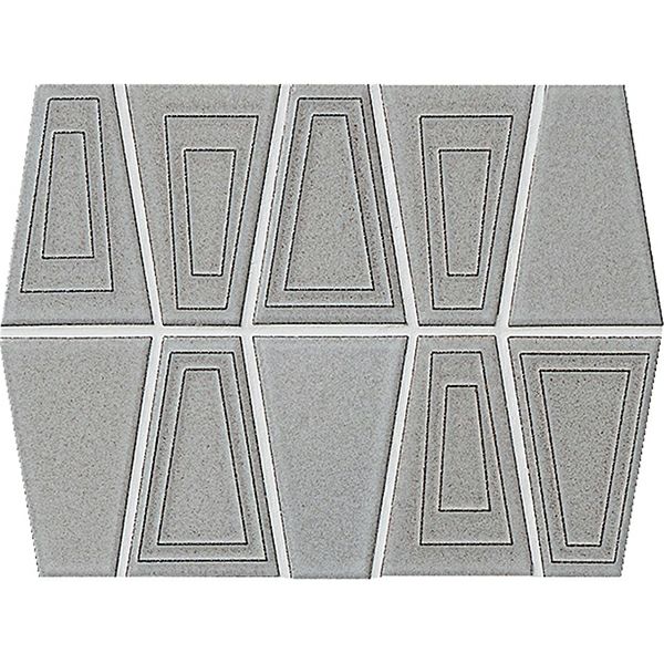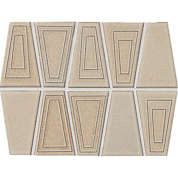 「リトム」。アールデコの幾何学デザインに触発された台形のモザイクタイル。淡く浮き出るラインの意匠が特徴的です。