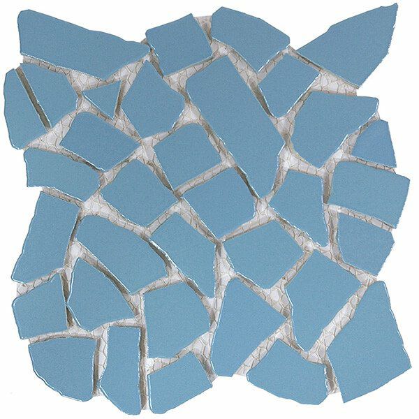 製造工程で割った特殊形状のタイルです。ふたつとして同じ形のないクラッシュタイルは曲面表現・オブジェ創作など造形感覚を刺激する「タイルアート素材」。鋭角部分の縁も丸く施工しているので安全です。DIYや工作などに!