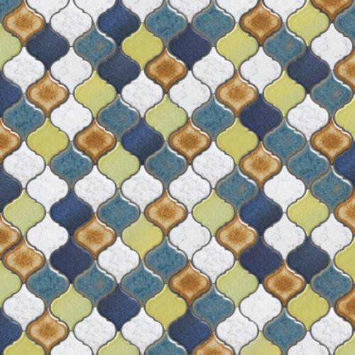 エスニックなイメージのランタン形のモザイクタイル「コラベル」。トラディショナルな釉薬づかいが、レトロなイメージを創ります。