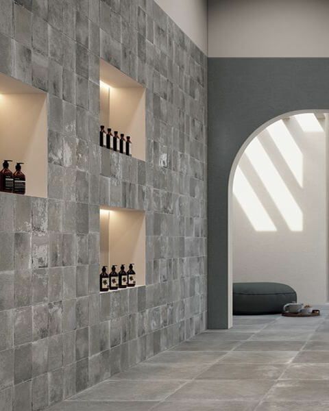 中世の街並みに使われたレンガの風景を再現。磁器質の確かな性能と経年による柔らかい風合いという相反する特長をうまく融合しています。