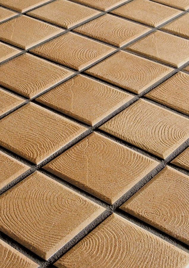ヒノキの香りが漂いそうなウッド調の無釉タイル。壁面にも床にもどうぞ。