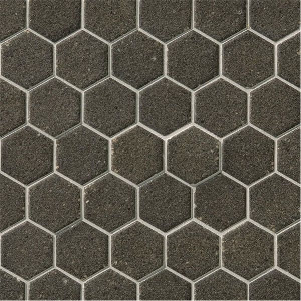 六角形と平行四辺形で組んだパターンが個性的なデザイン。アースカラーのモザイクタイルはナチュラルで優しいイメージです。