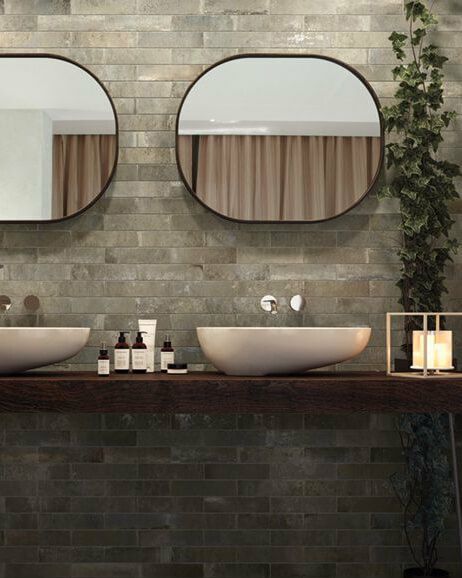 中世の街並みに使われたレンガの風景を再現。磁器質の確かな性能と経年による柔らかい風合いという相反する特長をうまく融合しています。