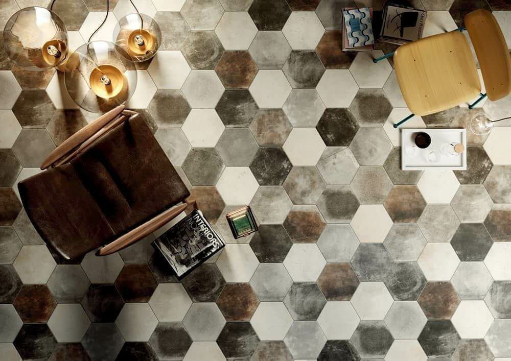 活気に満ちたダイナミックな都市、マイアミにある建物をイメージとした六角形のセメント調タイルです。