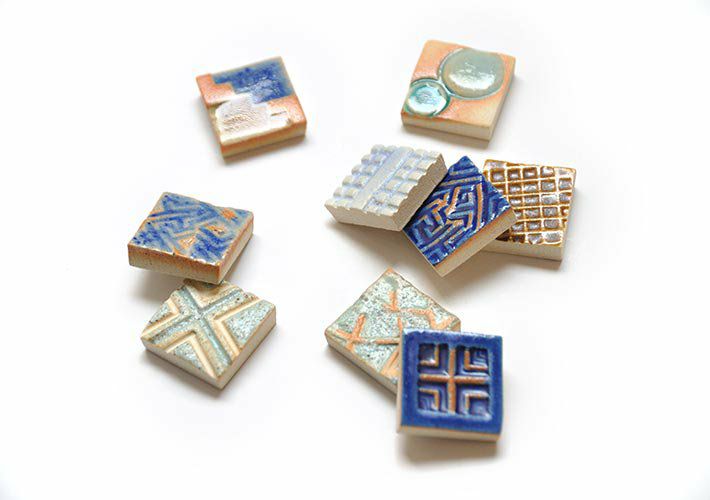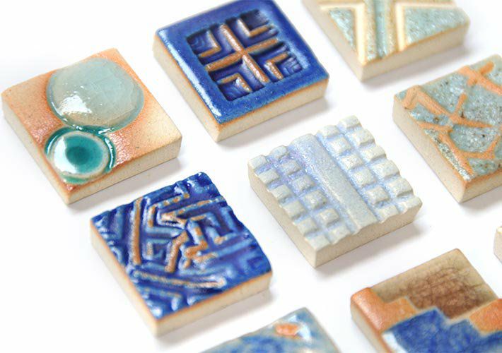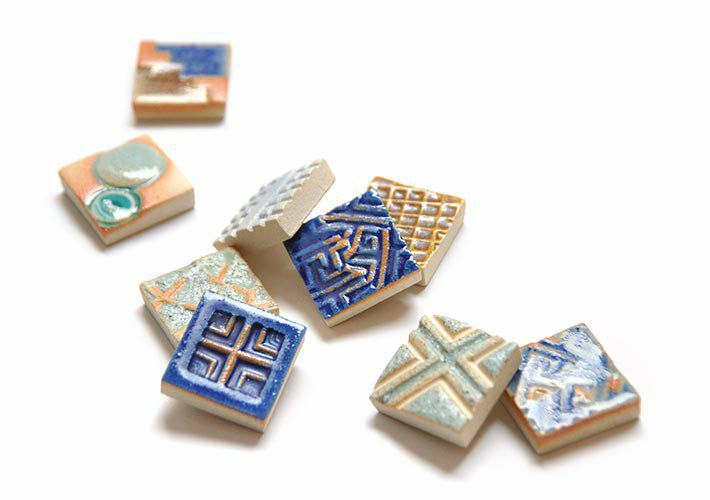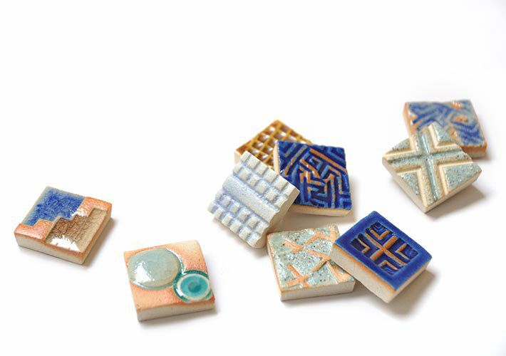 遺跡や街並みをモチーフとした作品を多く手がける彼女のタイルは、宝箱に大切にしまっておきたくなるような、どこかエキゾチックな佇まい。タイルとしてはもちろん、箸置きやアクセサリーパーツとしての使用もおすすめです。