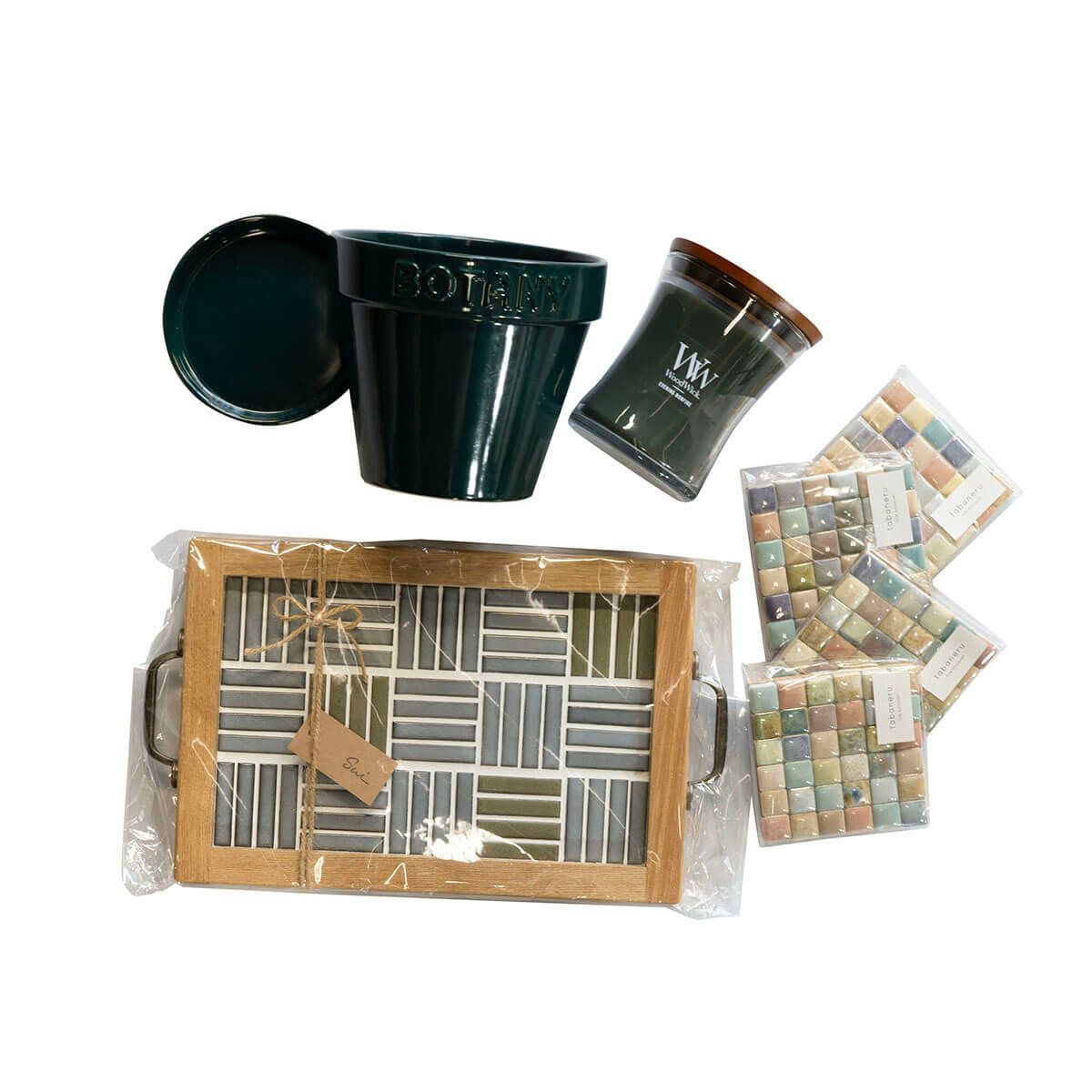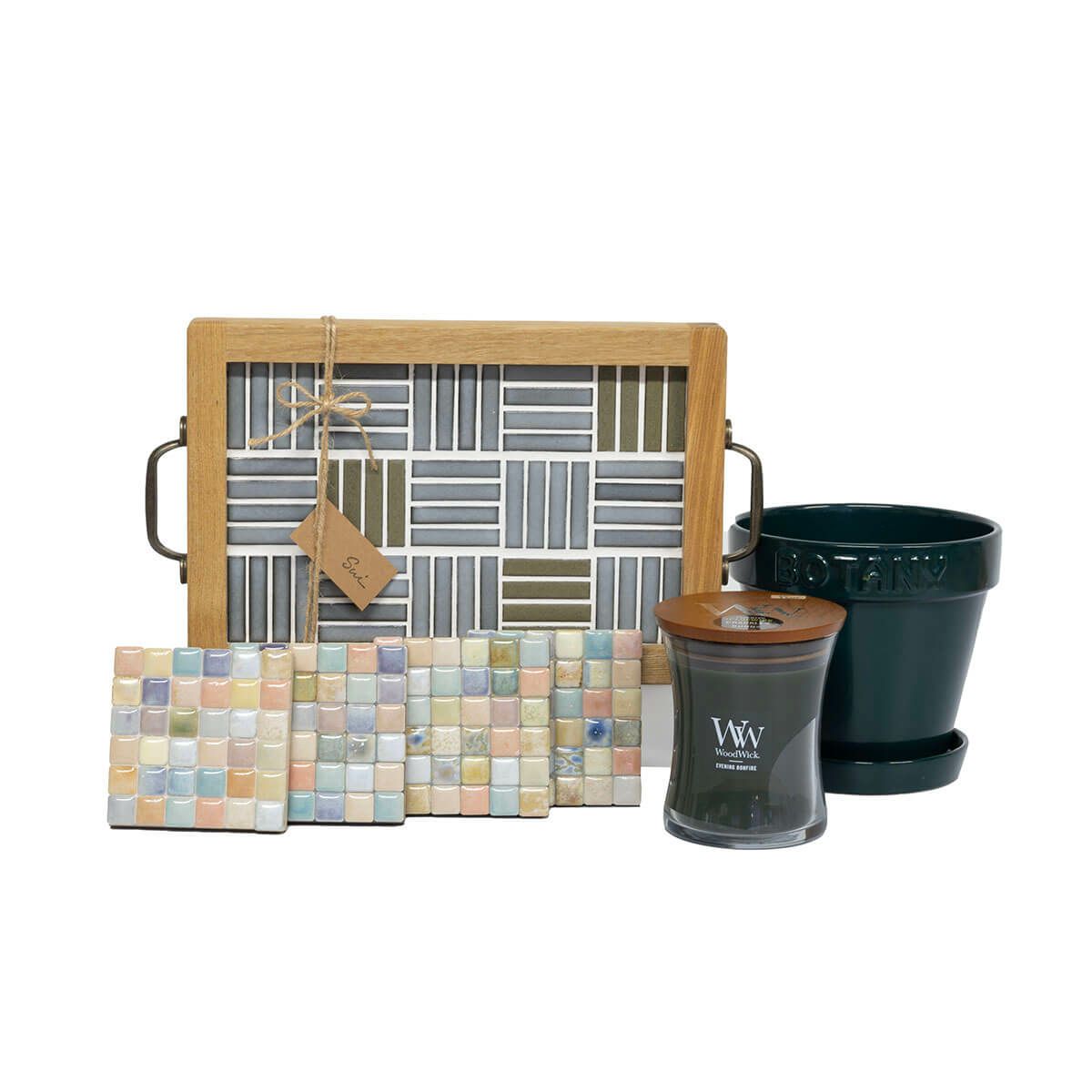 [福袋2025 Aセット]ハンドメイドタイルトレイ+癒しのアロマキャンドル(WoodWick)