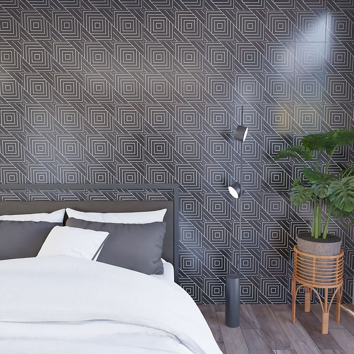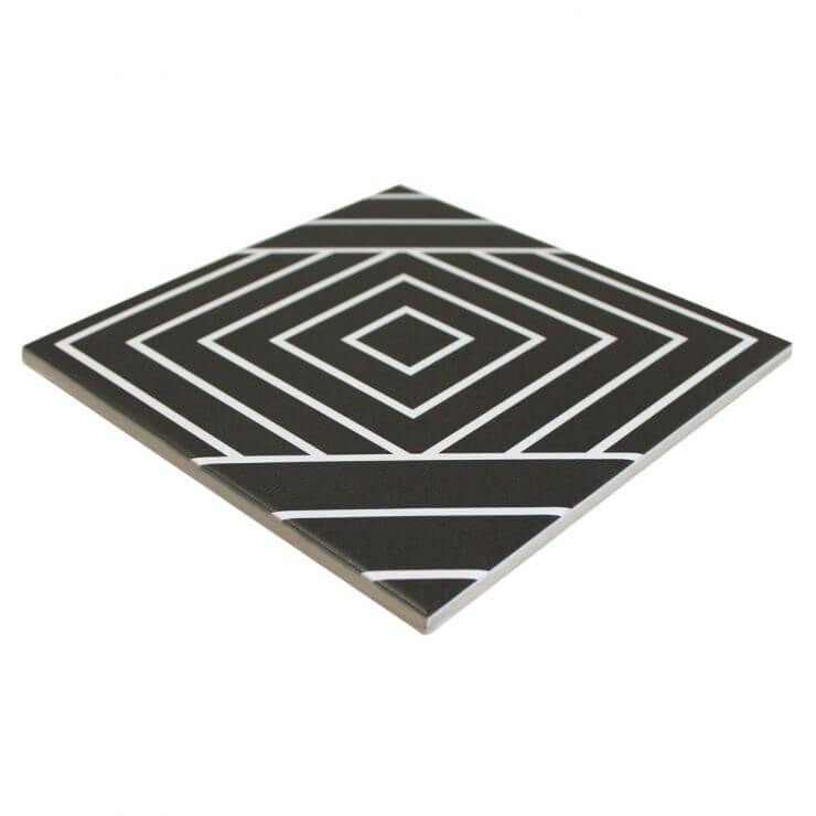 大胆な白黒のジオメトリック柄が特徴の200角タイル「B2W(ビートゥーダブリュー)」。