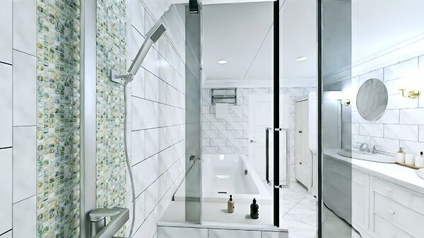 ステンドグラスのようなガラスタイル。光の反射を受けてより美しく輝きます。