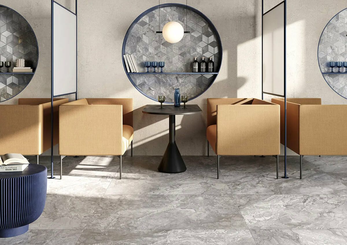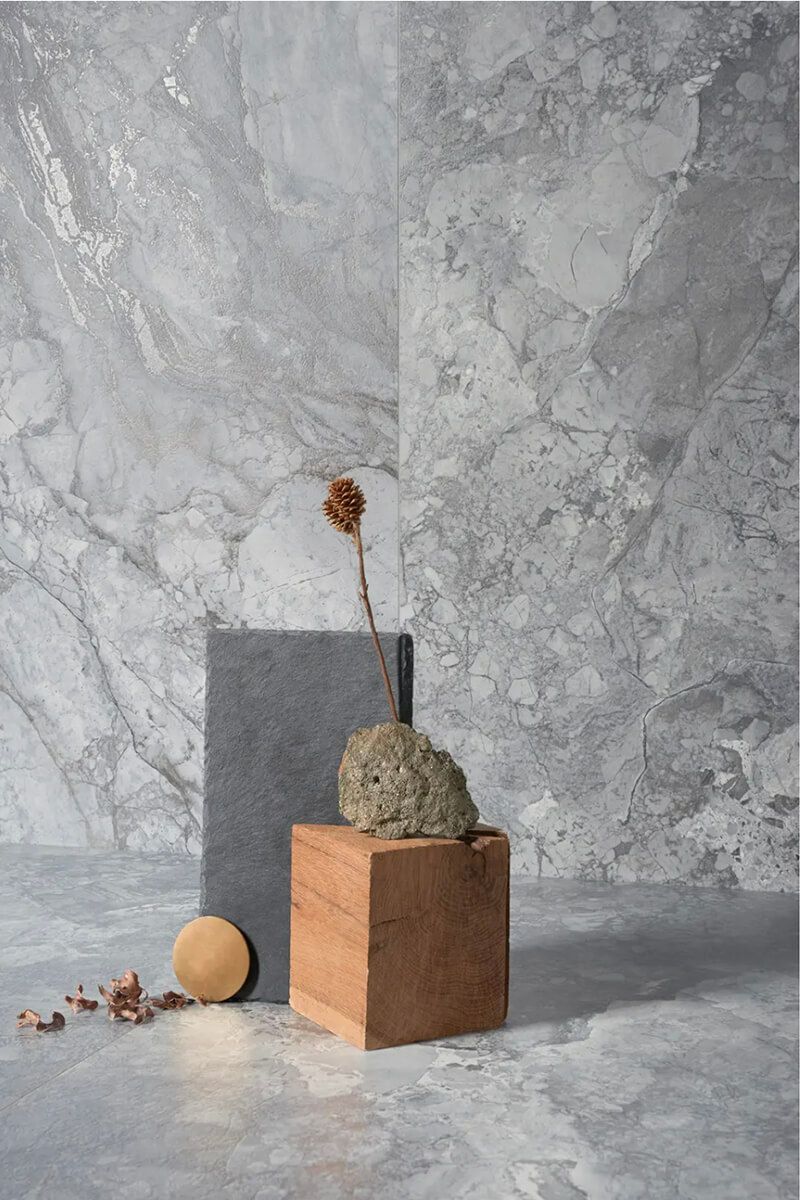 高品位な大理石を産出する地域として名高いイタリア中部・トスカーナ地方のブレッチャマーブルをモチーフにして、美しい石模様を現代的な解釈でデザインしたシリーズです。特にライトブルーのカラーは水面の反射を思わせる動きのある表情で、エレガントな空間を演出します。