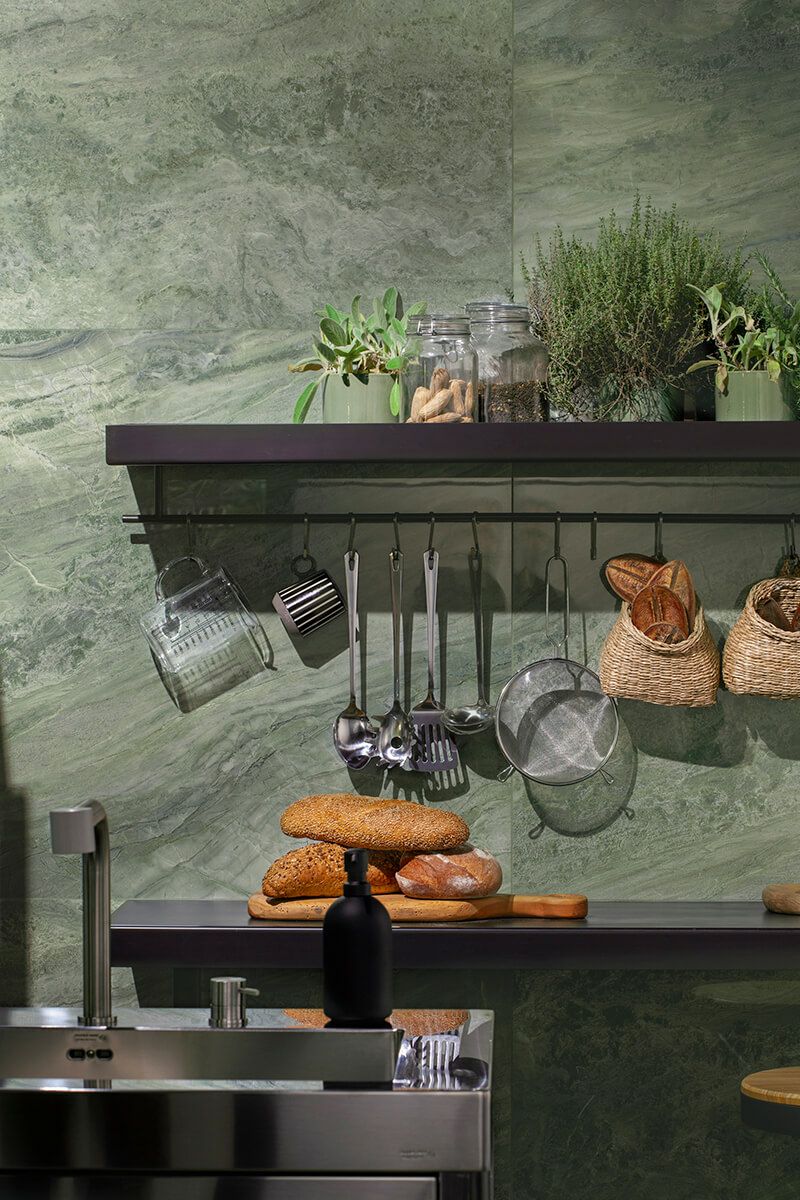 やわらかな色彩と詩的なグラフィックが空間に調和をもたらす、大理石調磁器質タイル「PARADISO」シリーズ。
