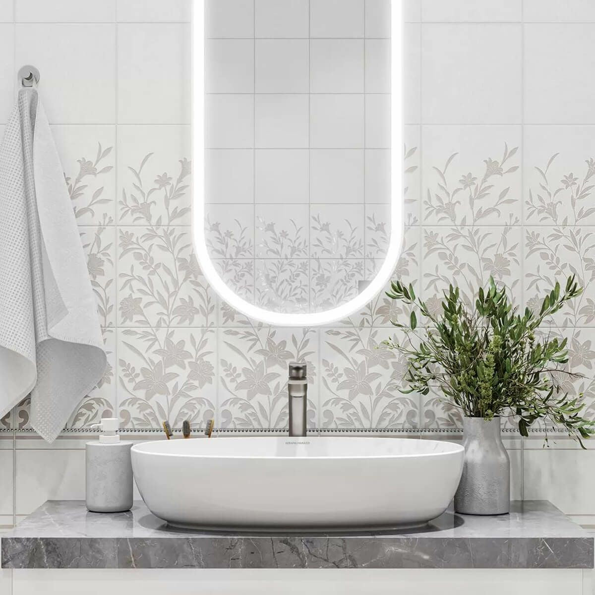 背景は、金属化合物で作られた細いクモの巣模様であるクラックル効果で仕上げられています。このシリーズには、白、ボルドー、黒の3つのカラーソリューションがあり、それぞれが異なる雰囲気を醸し出し、部屋に特別なムードを満たします。